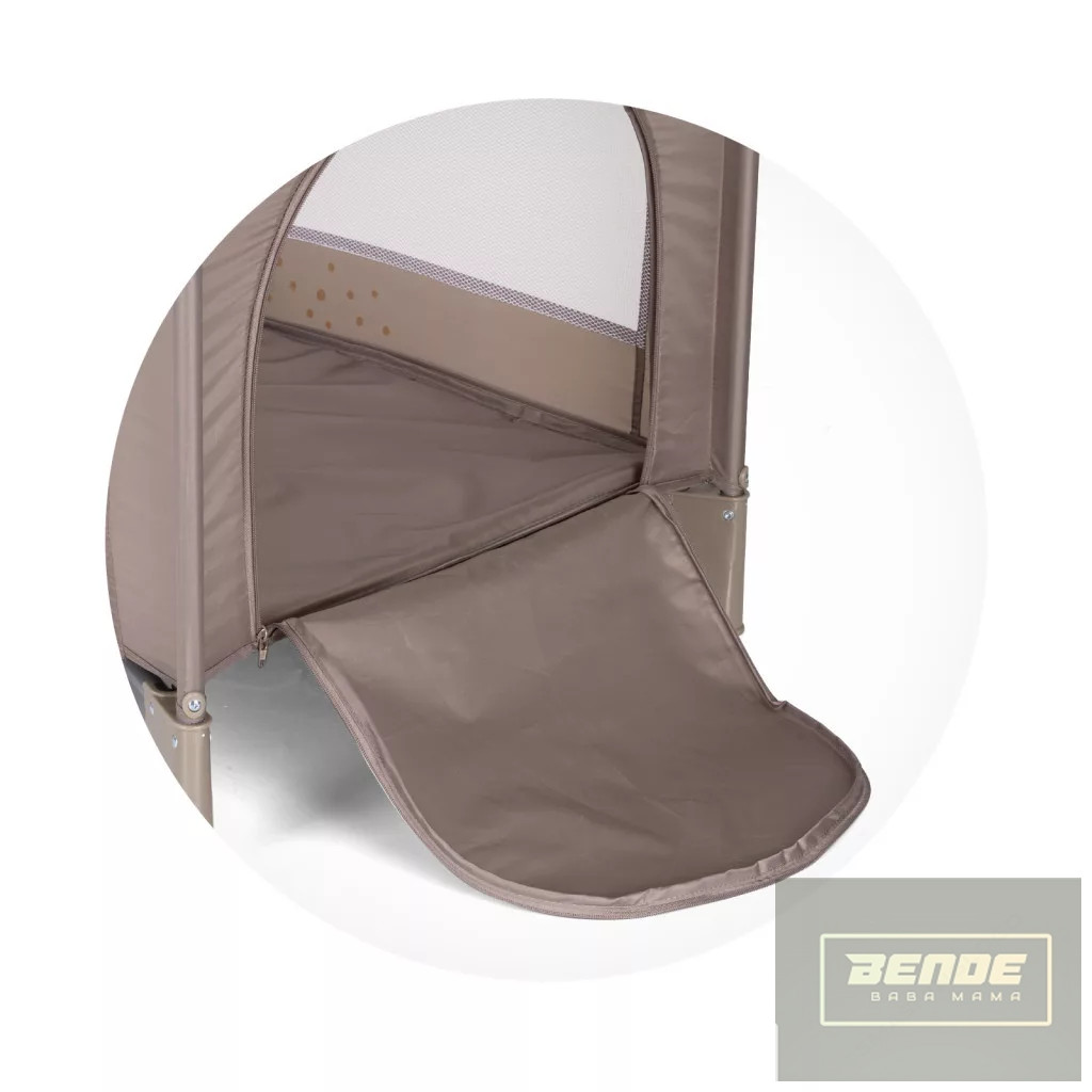 Könnyedén összecsukható utazóágy, matraccal. Hordozó táskájába könnyedén becsomagolható és vállra akasztható.Használata újszülött kortól 15 kg-os testsúlyig ajánlott.