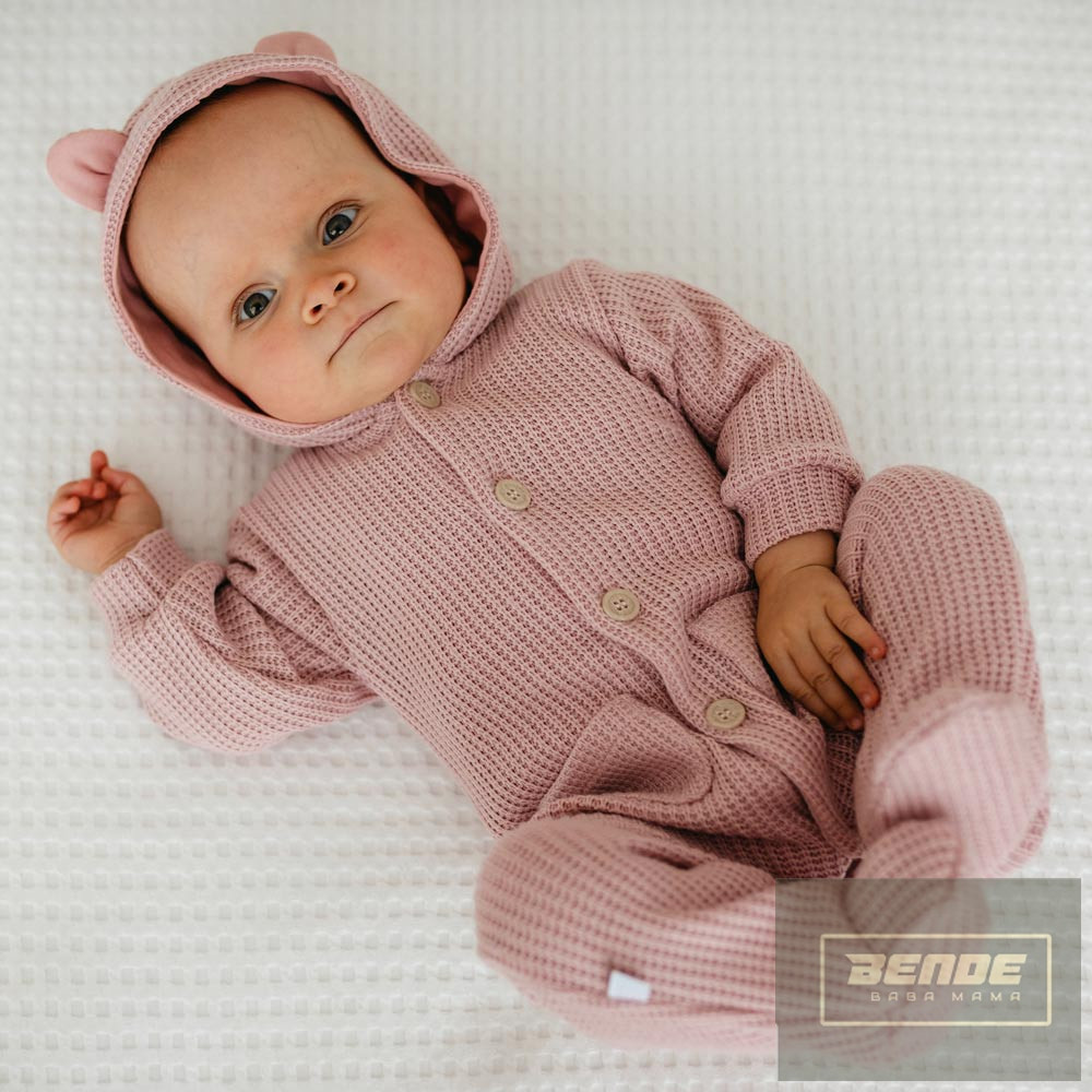 EEVI Fluffy Tails kislány kötött,kapucnis overál-rózsaszín