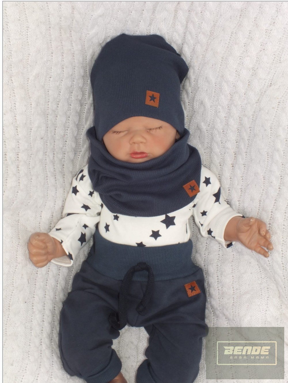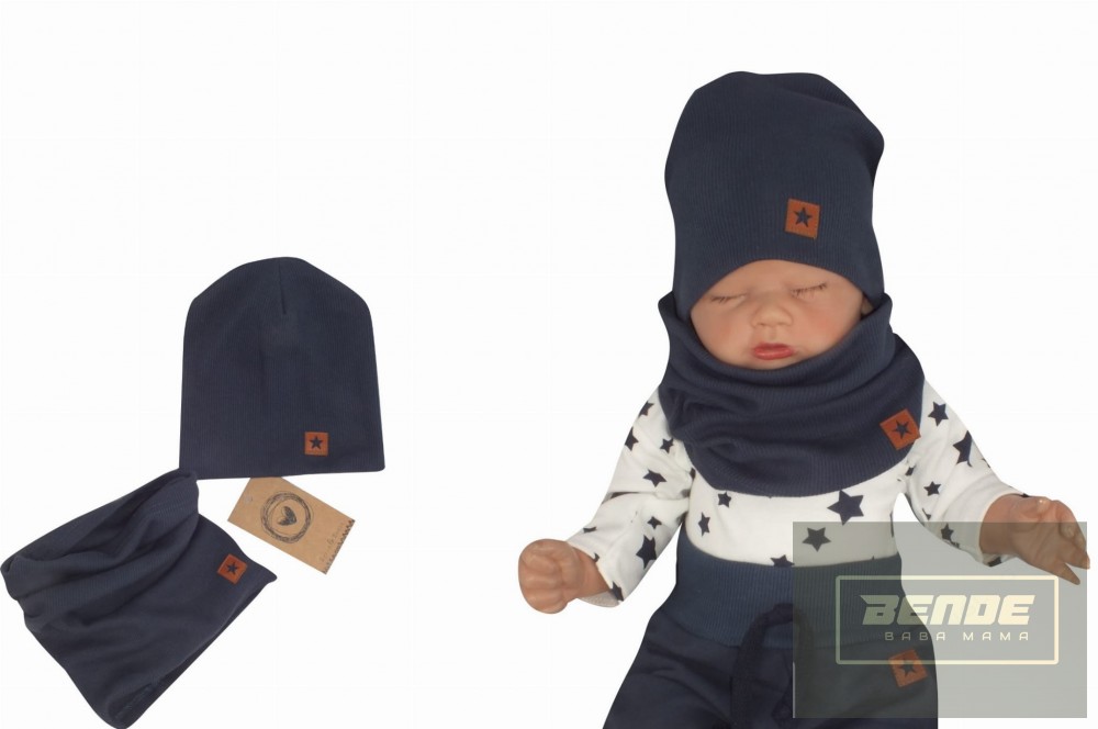 Zyzio&Zuzia -dupla, bordás pamut sapka +csősál szett -nany blue