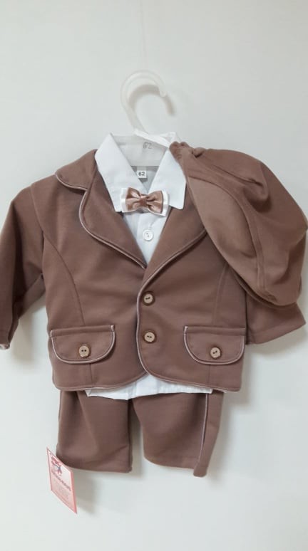 Fiú 5 részes keresztelő ruha /közép barna
