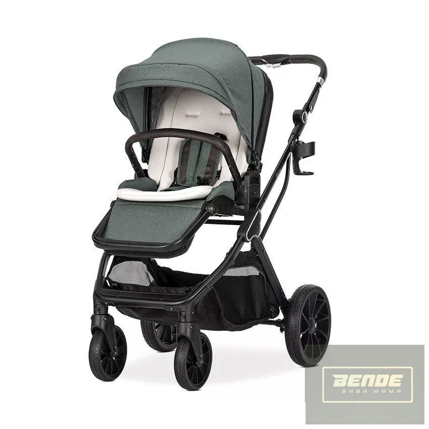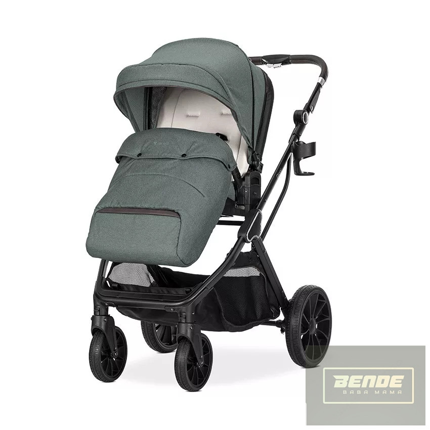 Fokozatmentesen, majdnem vízszintesig dönthető háttámlája kényelmes alvást nyújt séta közben is