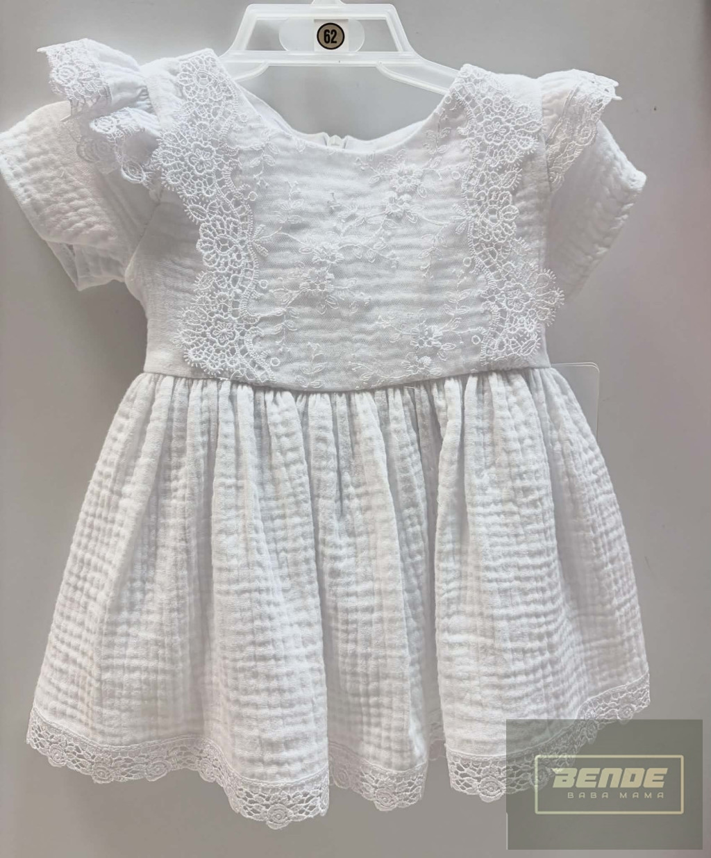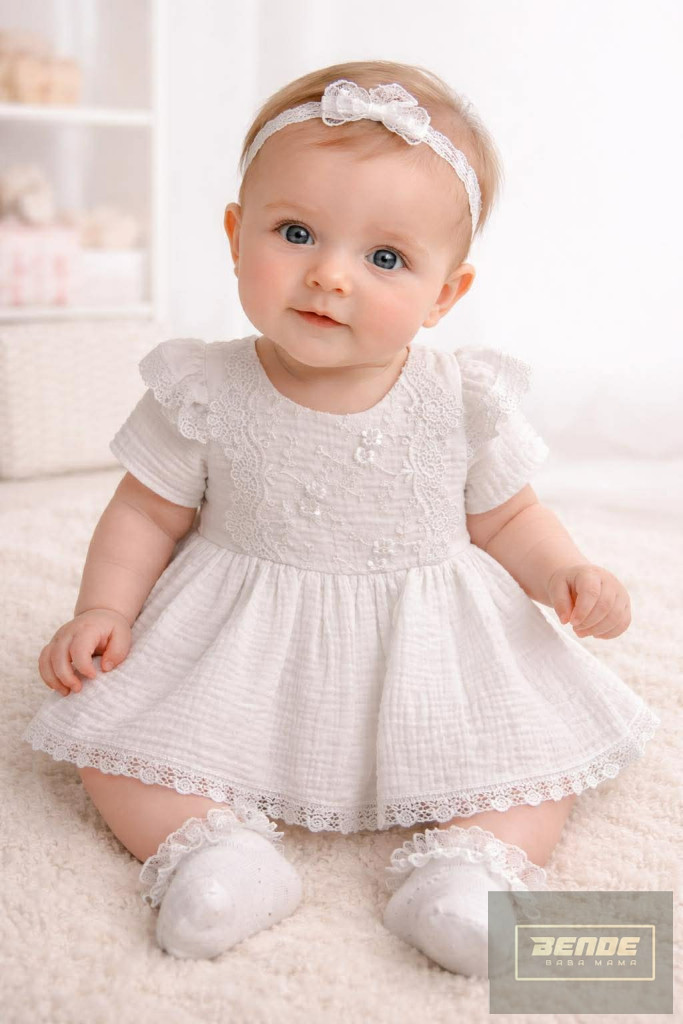 Rövid ujjú , muszlin kislány ruha ,csipkebetéttel